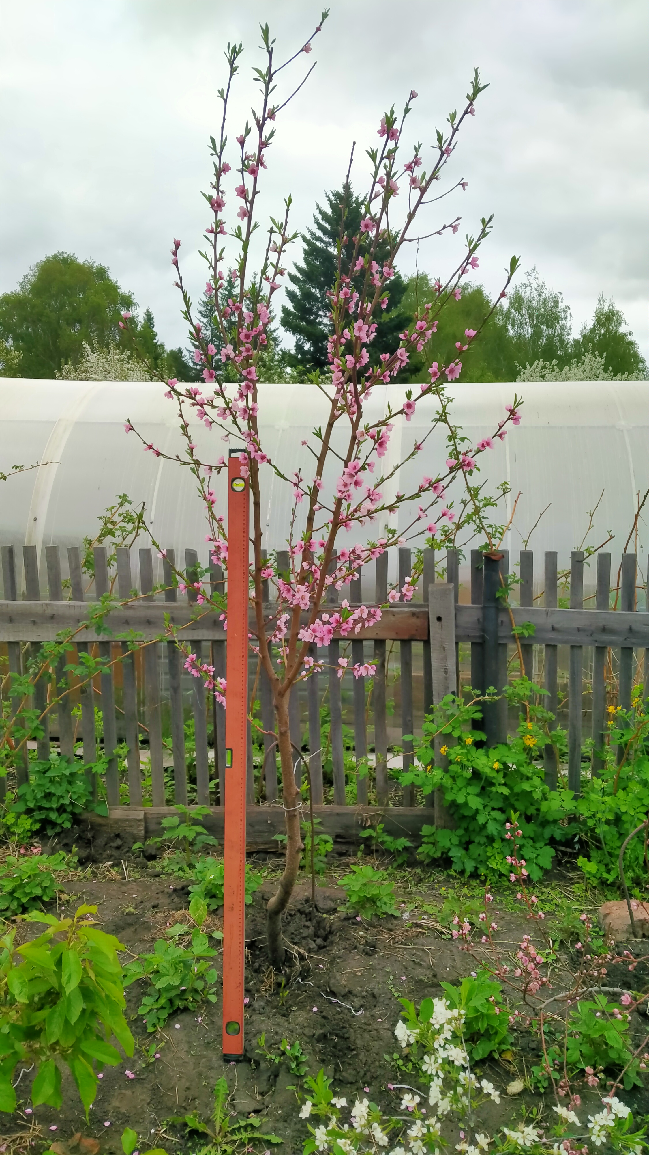 Привет форумчанам.В прошлом году я всё таки высадил полученные саженцы персиков на ПМЖ.Поставил вокруг саженцев железные ограждения,за лето один из них хорошо принялся расти,а второй почему то пересадку на ПМЖ воспринял хуже.За лето первый дал хороший прирост и на зиму я их отправил особо не укутывая,прикрыл только кедровыми ветками.Весной они проснулись и начади расти.Первый очень хорошо дал прирост,а на втором пришлось убрать несколько высохших веток.За лето опять первый хорошо оброс и осенью я заметил что он заложил много цветочных почек,а на втором цветочных почек не видно.На эту зиму я укрыл их от мышей цилиндрами из мелкоячеистой сетки и обернул укрывным материалом.Надеюсь персики выживут и зацветут следующей весной.Кстати сорта прислали с надписью МОРОЗОСТОЙКИЙ и ЗИМОСТОЙКИЙ.